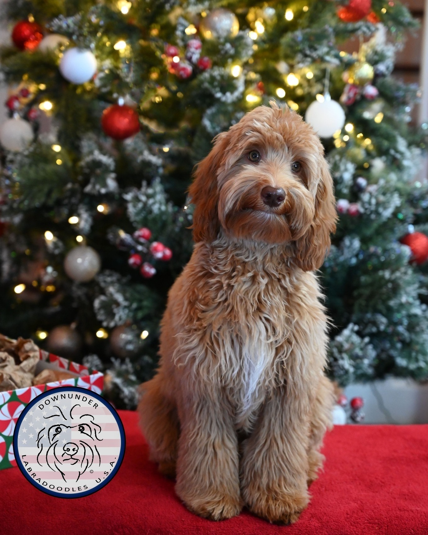 Fiji is a large mini parti-colored labradoodle. She is full of energy and spunk. She can normally be found reclining on the back of the couch or perched on the A/C vent. To say she isn’t a fan of being groomed is an understatement but she is truly elegant when she is clean and clipped. Fiji whelped DownUnders first all parti litter in 2020.